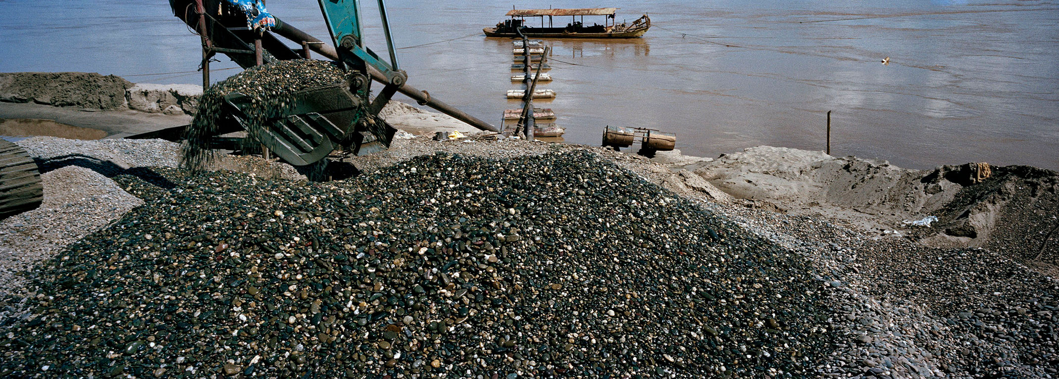 In 2016, I decided to set out and travel down the Mekong River to see the effects of sand mining first-hand. I packed 200 rolls of Kodak Porta 160, a Hasselblad panoramic camera, and a rough plan to start in Laos and make my way downriver to southern Vietnam. Urbanization wouldn't happen without sand. Take Singapore as an example. The wealthy city-state has increased its land mass by some 22 percent since the 1960s by reclaiming land from the sea and making new roads, office towers, and HBD apartment blocks. That makes Singapore, a tiny country smaller than my old hometown of New York, one of the biggest sand importers in the world. And a lot of sand comes from the banks of the Mekong. The constant erosion of the river's banks makes the river itself more shallow (lower riverbanks mean wider, and therefore more shallow, rivers) , and that equals fewer fish to sustain local fishing industries and feed the people who live nearby. The ironic part of the problem is that these sand minders live alongside the river, too. They are basically working every day to dismantle their own environment and make their own futures more precarious. But no one has time to think about stuff like that when you're trying to feed a family.
